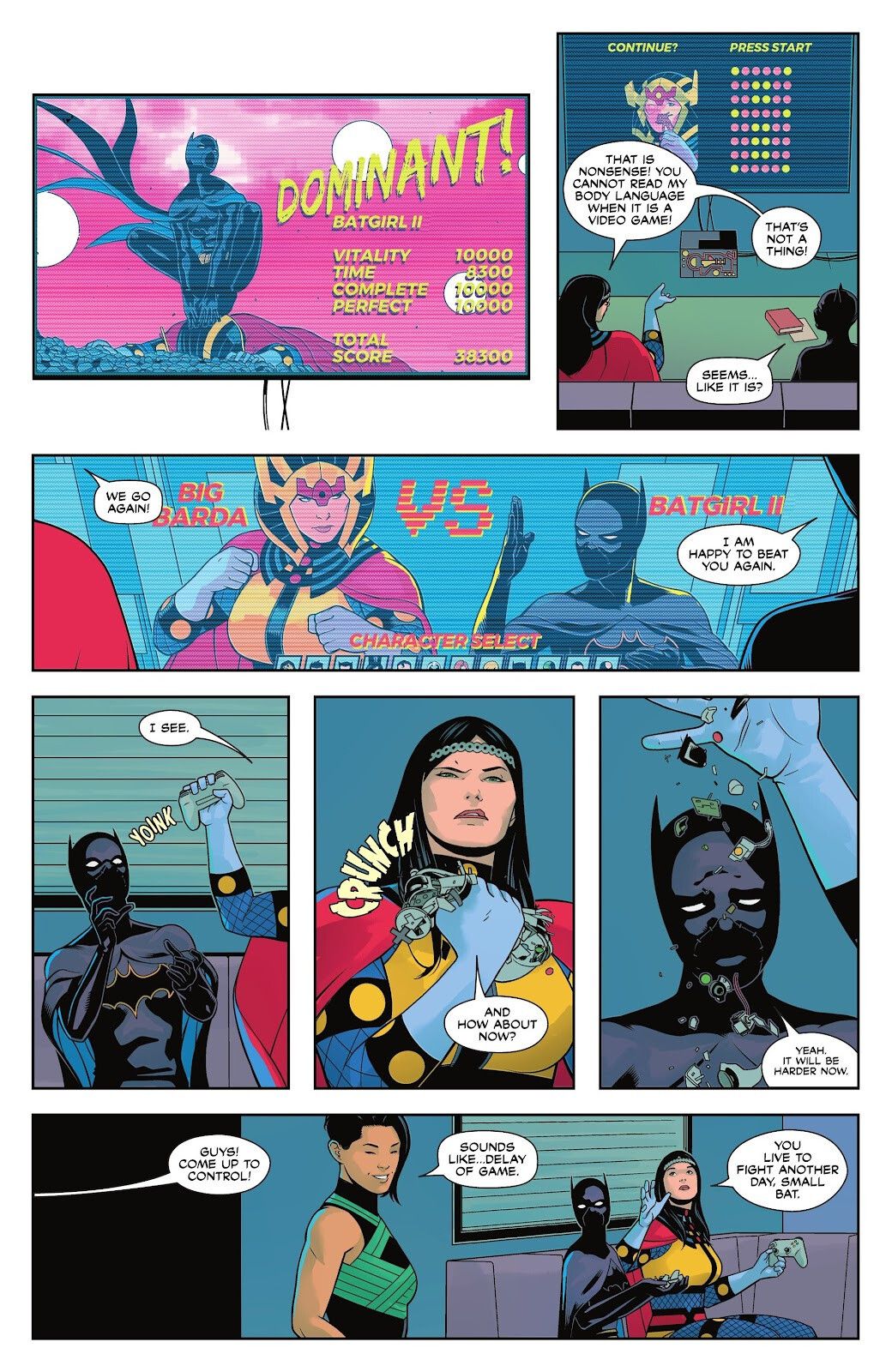 More recently, Black Canary was busy training Sin herself, which left Batgirl and Big Barda to hang out and play video games while they waited for their next mission.