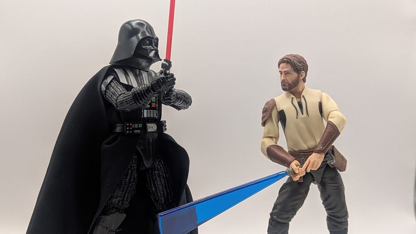 As for this figure, he’s about what you’ve come to expect from The Black Series. Kyle stands at 6” tall, which makes him a little shorter than the Obi-Wan Kenobi wave Vader and a little taller than the The Mandalorian wave Luke Skywalker. (He’s about the same size as the Jedi: Survivor Cal Kestis figure, if you’re keeping score.)